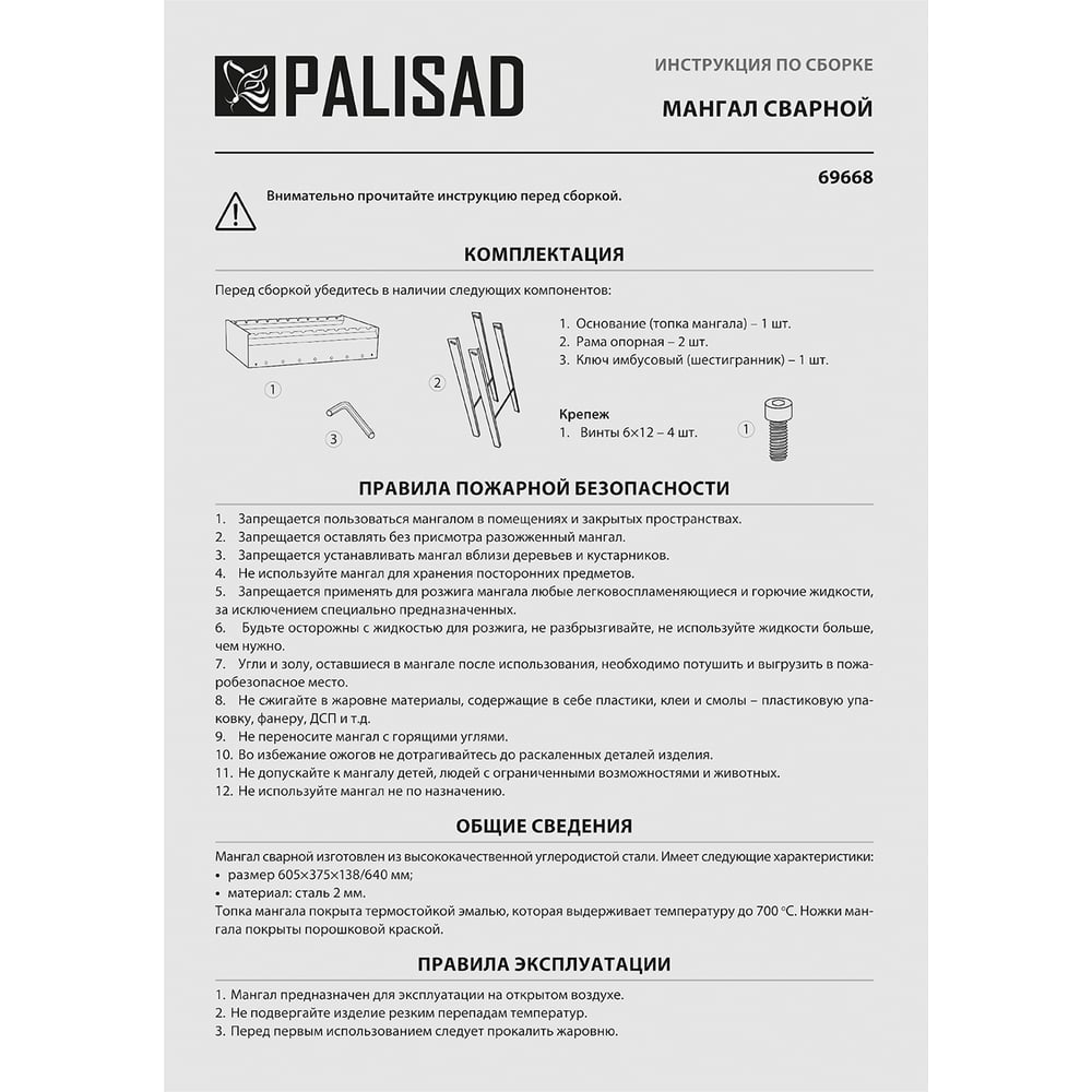 Сварной мангал PALISAD Camping 69668
