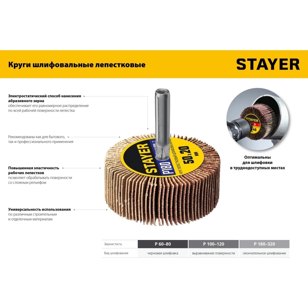 Круг шлифовальный лепестковый на шпильке STAYER P120, 30x15 мм 36606-120