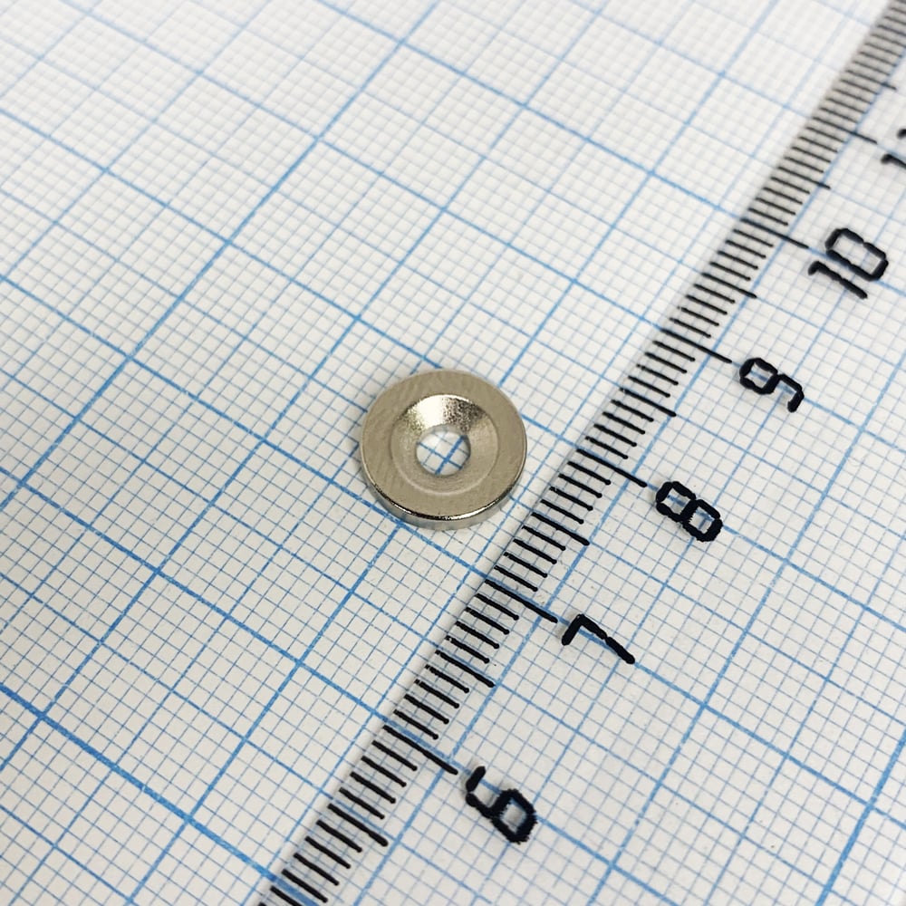 Неодимовый магнит Проф-Магнит с зенковкой 8xd3x2, 10шт. NdFeB D8x3x2 зенк