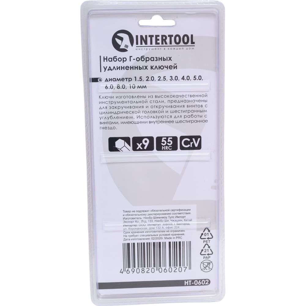 Набор г-образных шестигранных удлиненных ключей INTERTOOL HT-0602