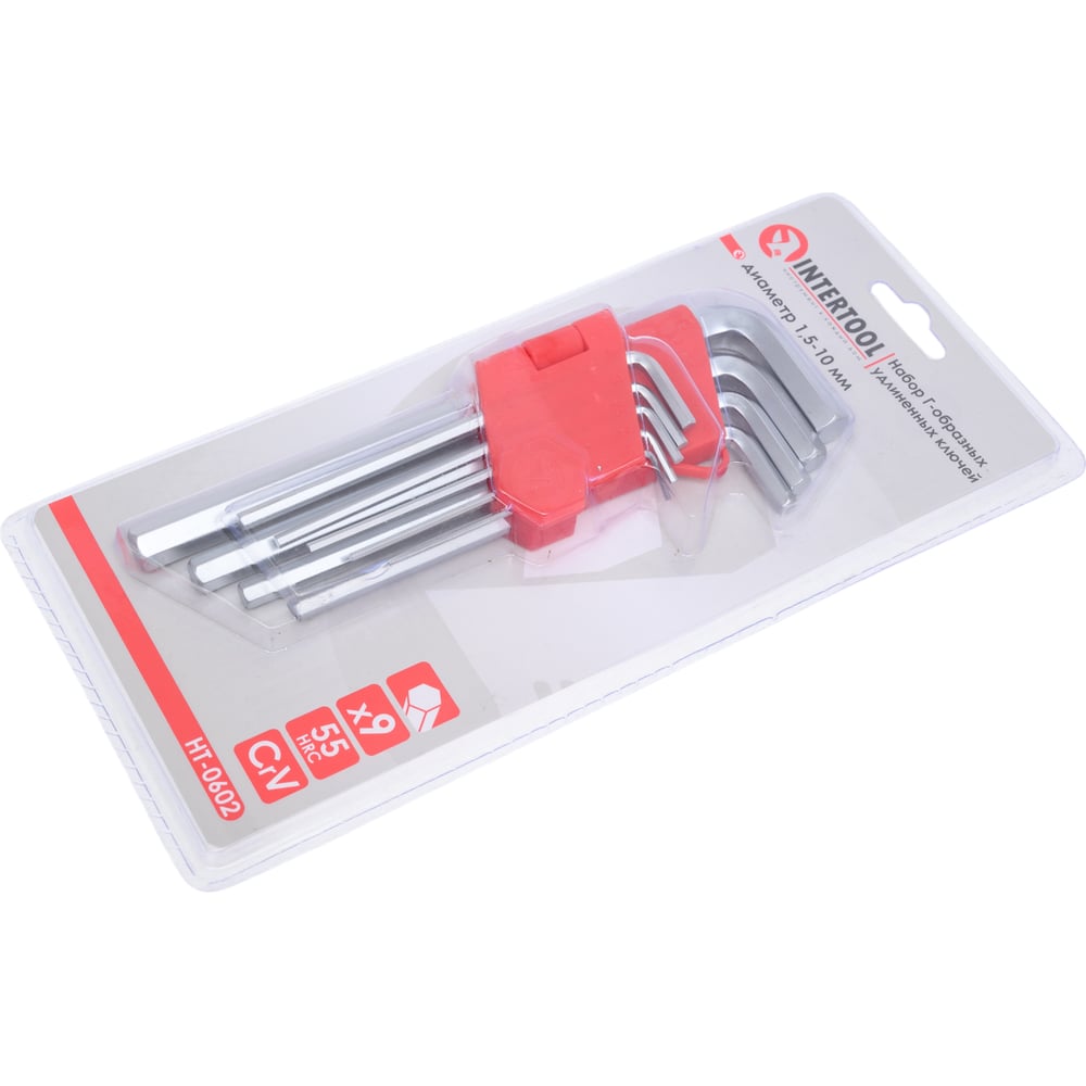 Набор Г-образных шестигранных удлиненных ключей INTERTOOL 9ед., 1.5-10мм, Cr-V, 55 HRC HT-0602