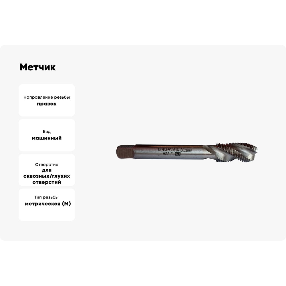 Метчик ФТ М16 машинный HSS-E с винт. канавкой R35 исп.С 140160