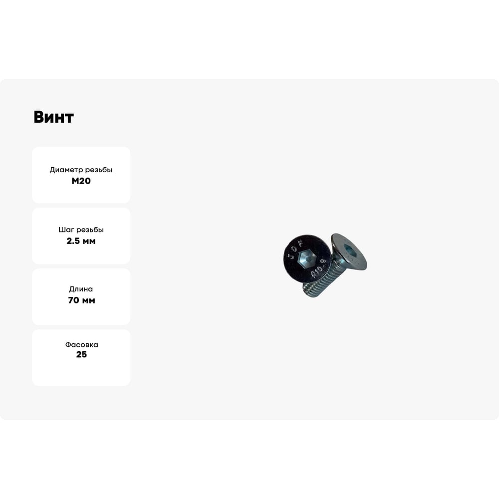 Винт ZAMETAL М20x70, пр. 10.9, с пот. гол., в/ш, DIN 7991, оц., уп. 25 шт. ZA521477