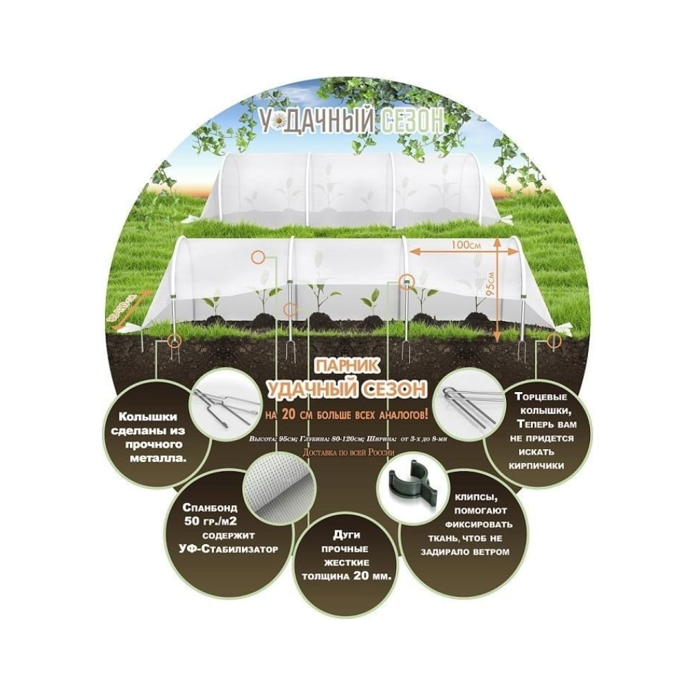 Парник из дуг с укрывным материалом Удачный Сезон 6 м 3004