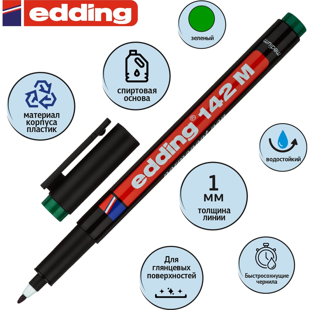 Перманентный маркер для проекторных пленок EDDING круглый наконечник, 1.0 мм, зеленый E-142#4 1183505