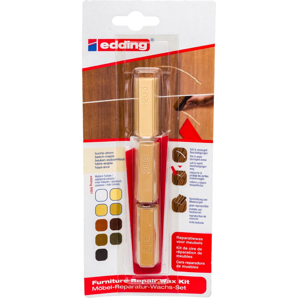 Восковой набор для ремонта мебели Edding (3 оттенка; бук-клен; блистер) E-8901#3-B#611