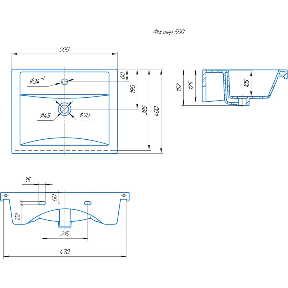 Тумба с раковиной Onika Айленд 50 подвесная, белая (ум. Como 50/Фостер 50) 105021