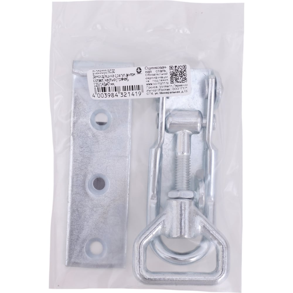 Замок для ящика VORMANN с регулирующим винтом, с прямой ответной частью 125/145х47 мм, оцинкованный 01205000/8030