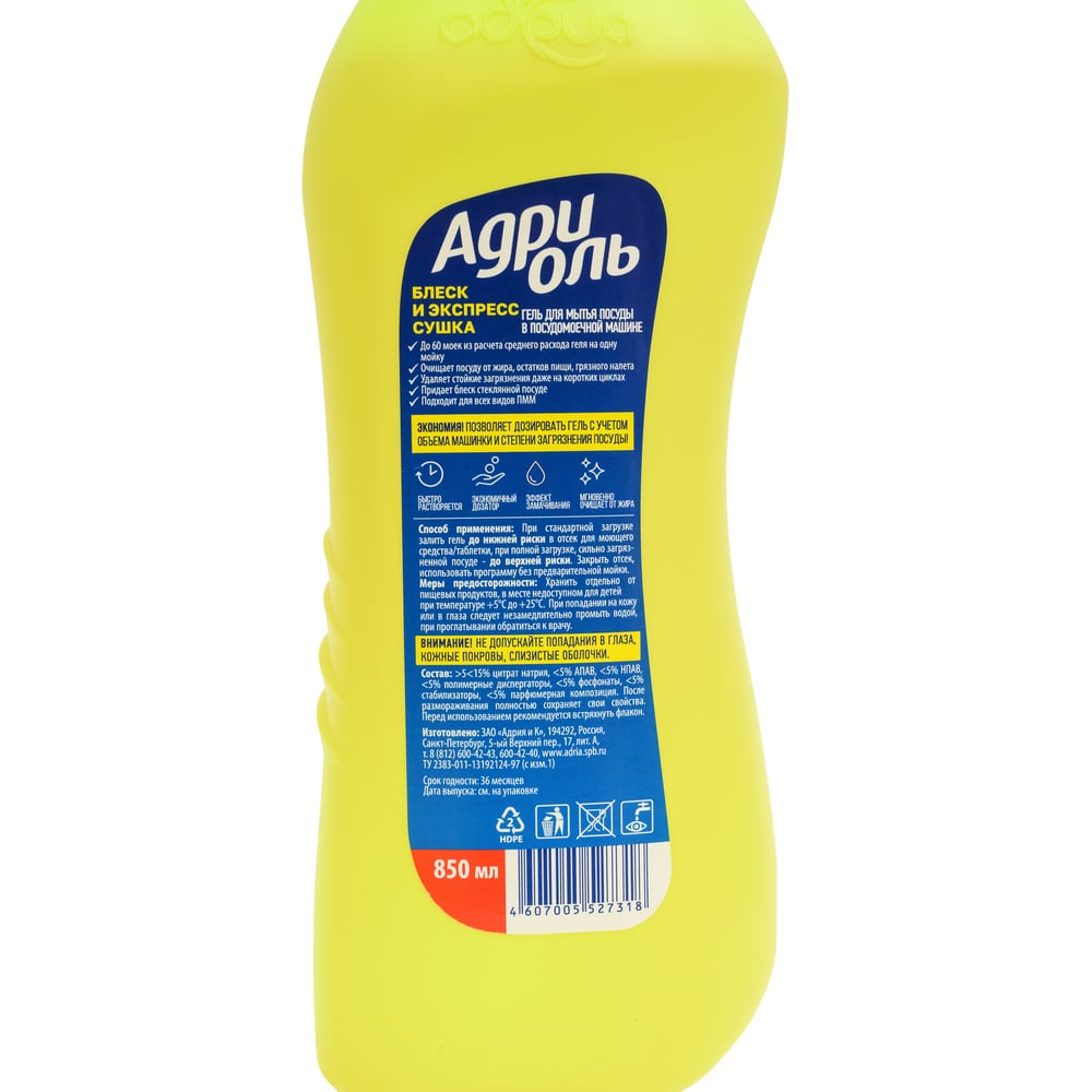 Гель для посудомоечной машины АДРИОЛЬ 850 мл 100250