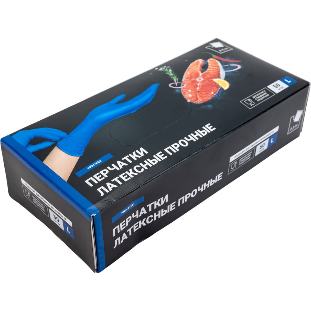 Латексные прочные перчатки Komfi High Risk (27 гр), синие, L, 25 пар, А.Д.М. 121810