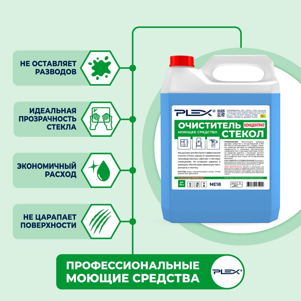 Концентрат-очиститель стекол PLEX 5 л УТ000005581