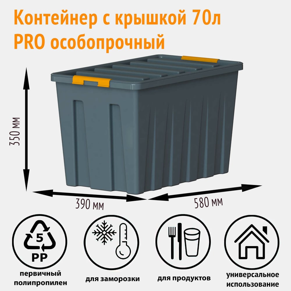 Особопрочный контейнер HONEYCOMB серии PRO 70 л, с крышкой, серый M-070Д-00.76new