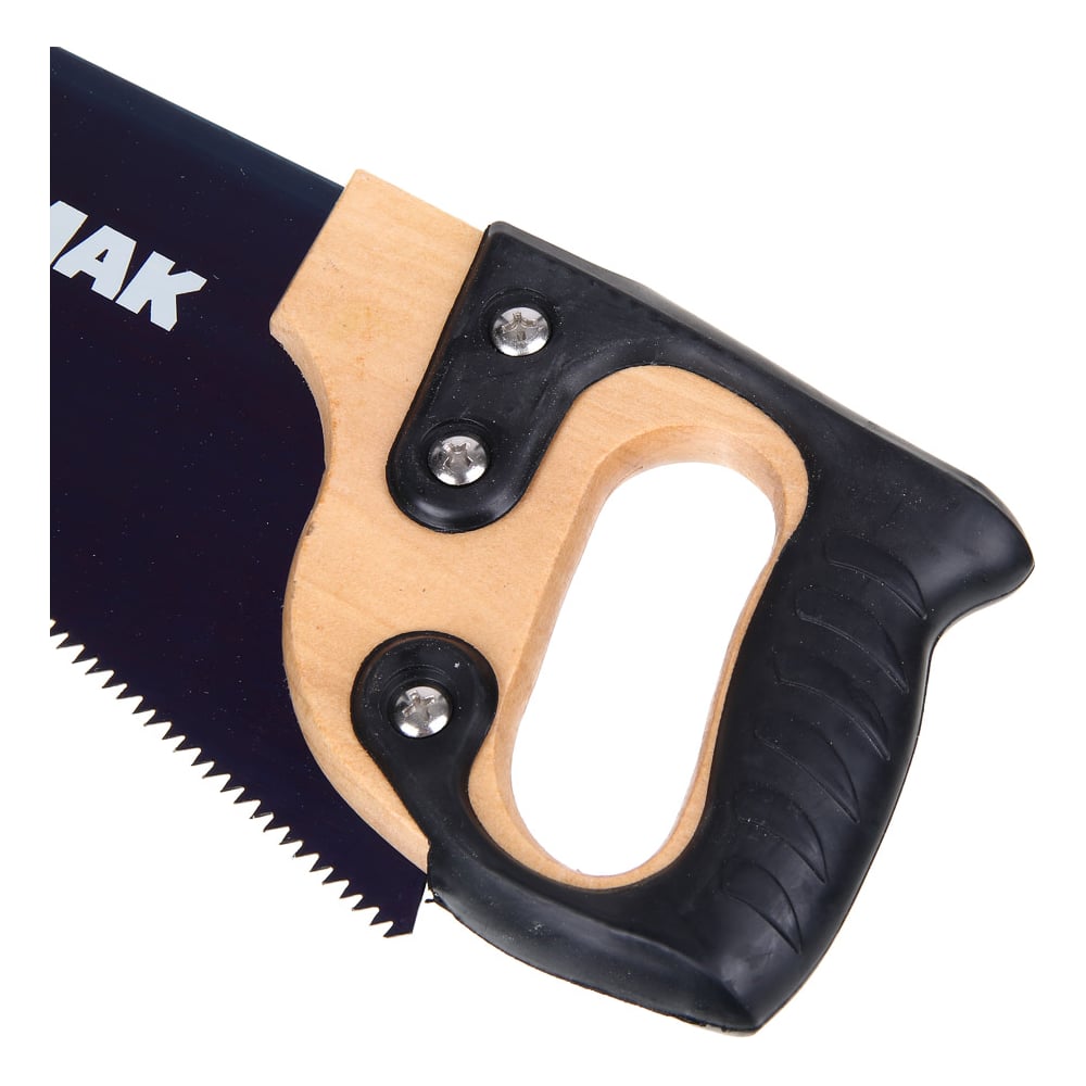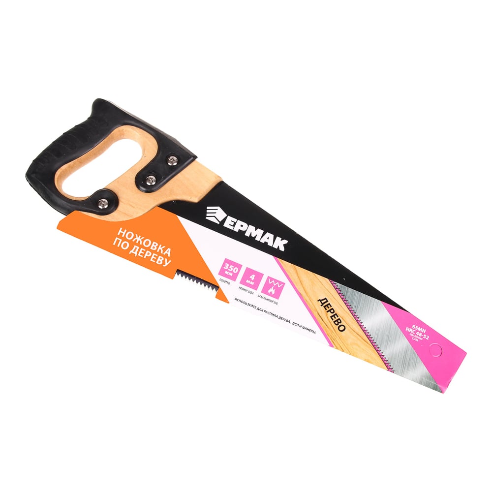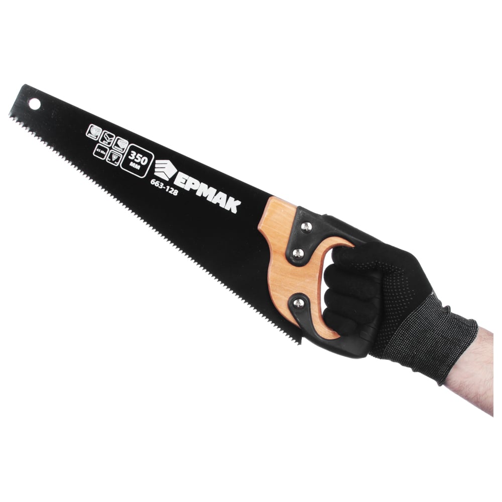 Ножовка по дереву ЕРМАК 350мм с деревянной обрезиненной ручкой, универсальный зуб, 4 мм 663-128