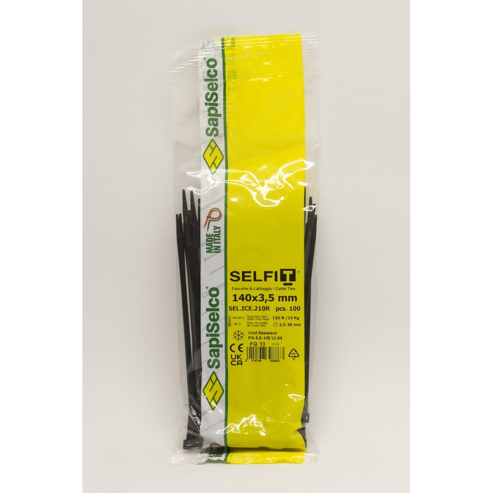 Стяжки SapiSelco морозостойкие, самозатухающие, черного цвета, 3.5x140 мм, полиамид 6.6, уп. 100 шт. SEL.ICE.2.210