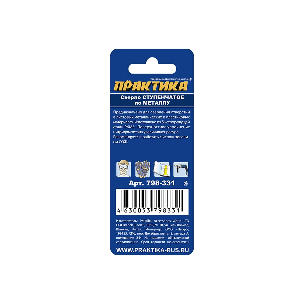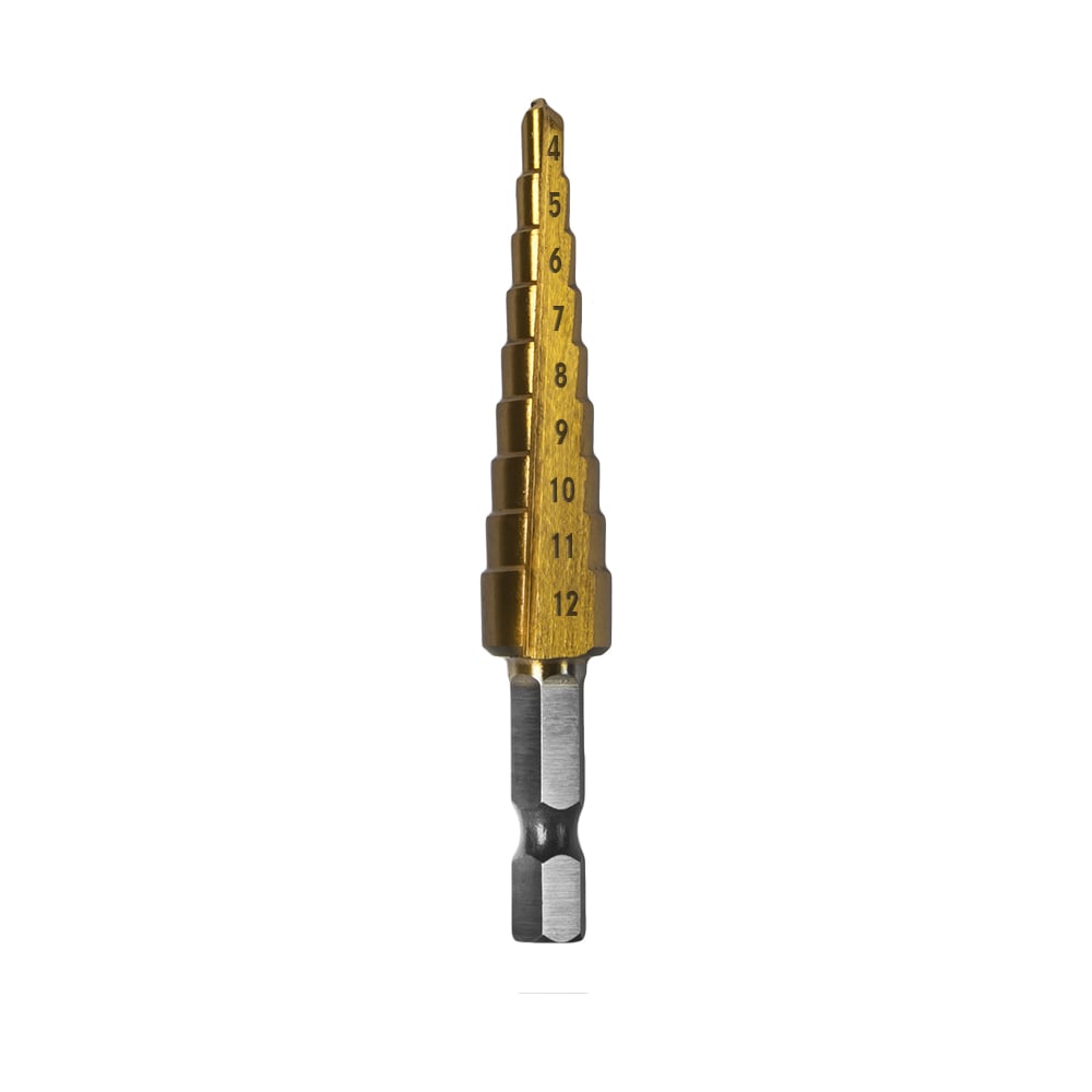 Сверло по металлу ступенчатое 4-12 мм шаг 1 мм TIN ПРОФИ ПРАКТИКА 798-331
