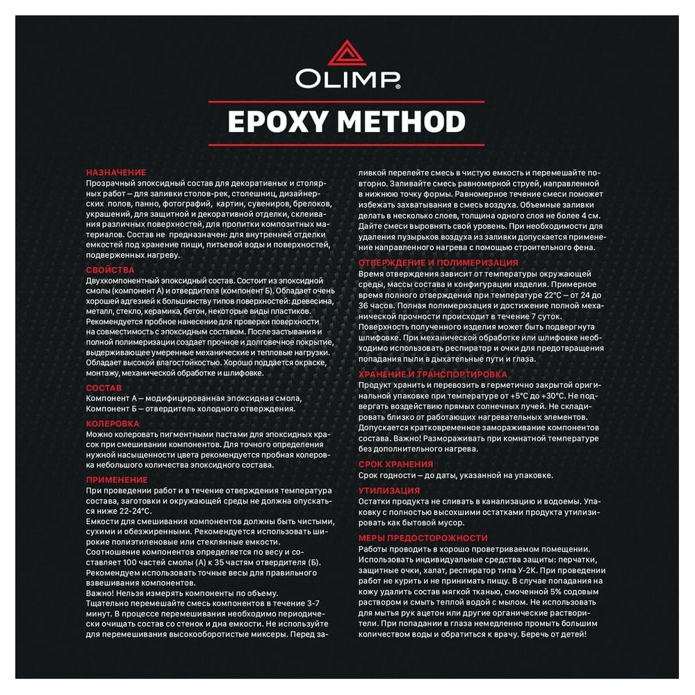 | Время жизни после смешивания | 30 мин |
