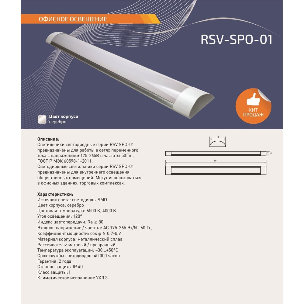| Длина светильника | 1200 мм |