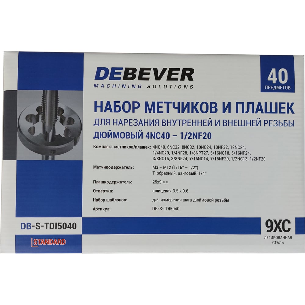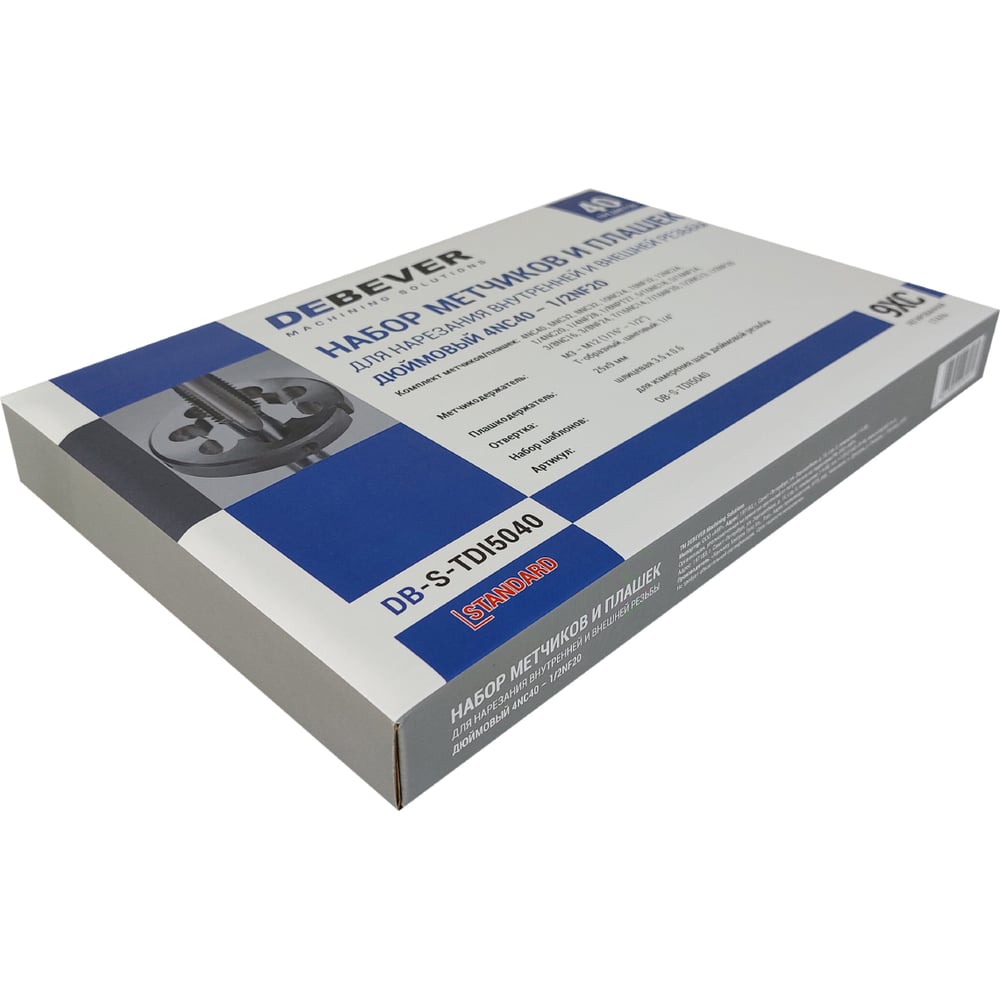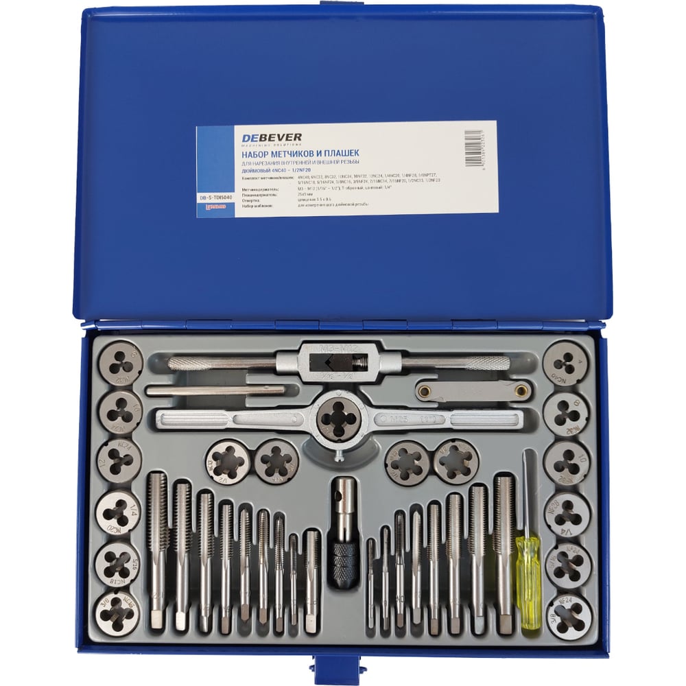 Набор метчиков и плашек Debever Machining Solutions 4NC40 - 1/2NF20, 40 предметов, дюймовая резьба DB-S-TDI5040
