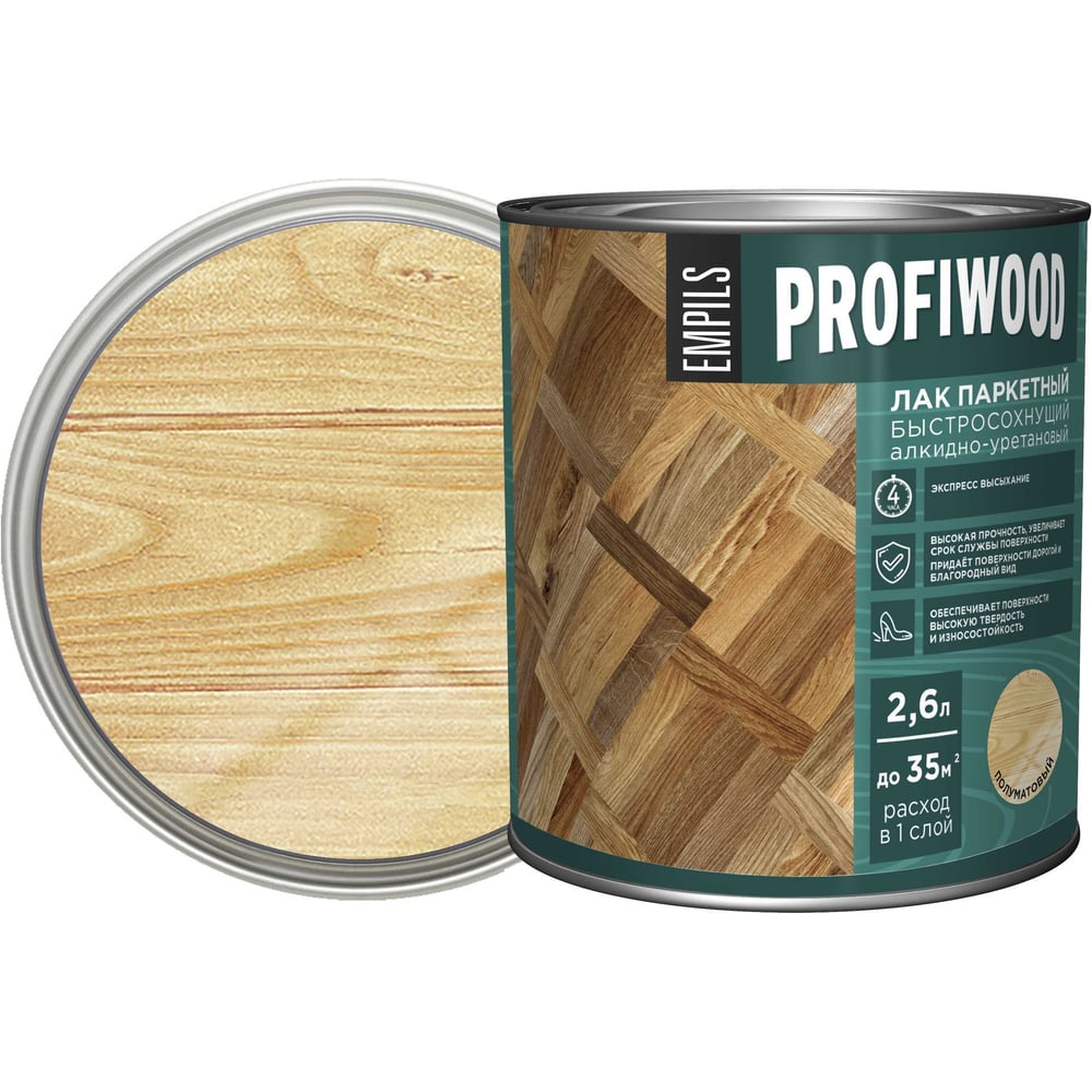 Алкидно-уретановый паркетный лак PROFIWOOD (быстросохнущий; полуматовый; 2.6 л; 2.4 кг) 62240