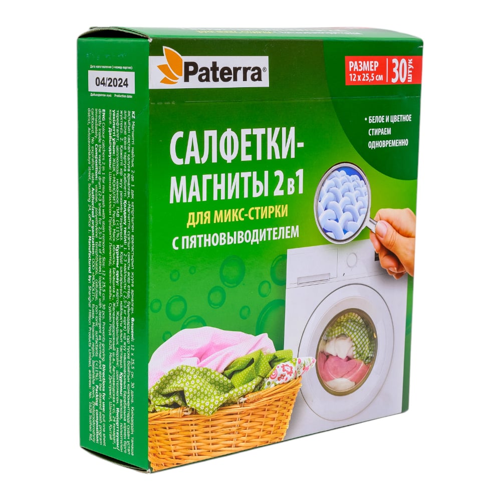 Салфетки-магниты для микс-стирки PATERRA 2 в 1, с пятновыводителем, 30 шт в упаковке 402-896