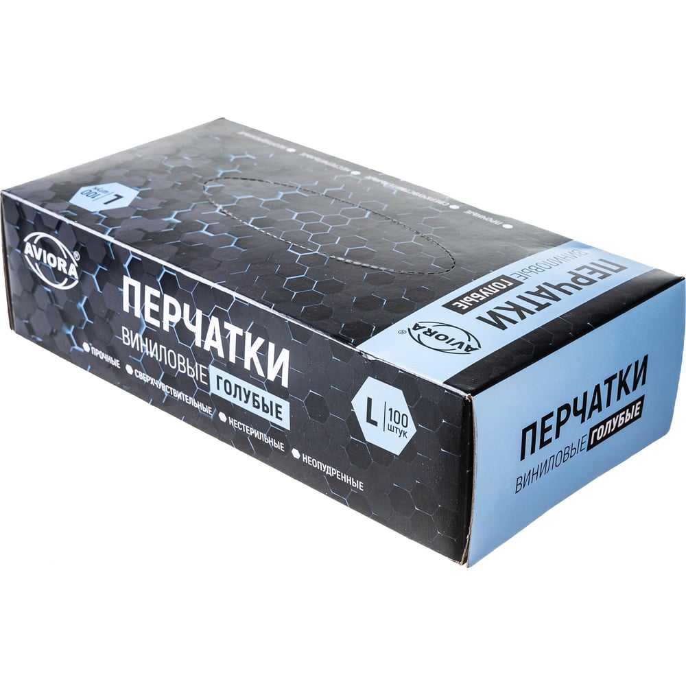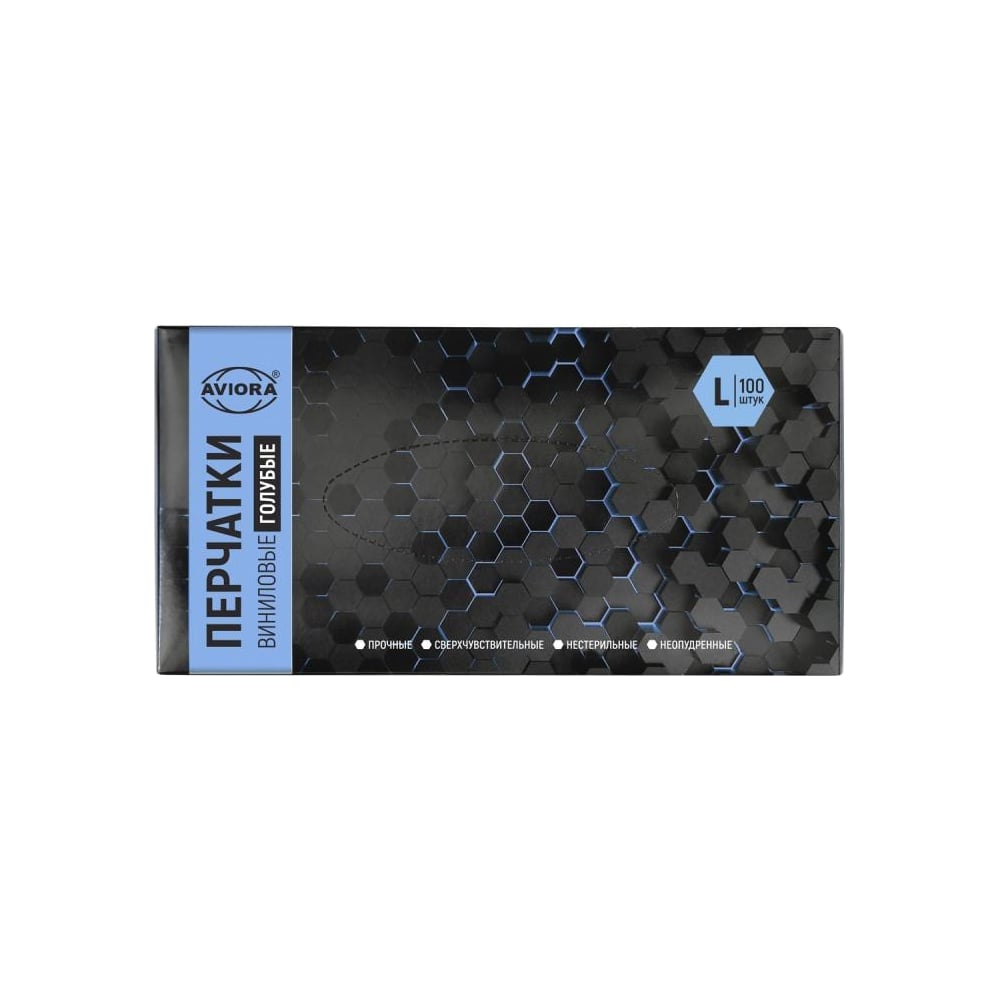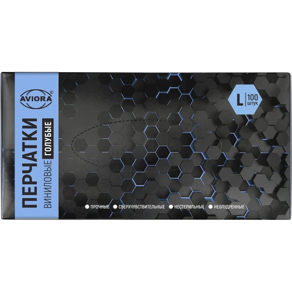 Виниловые неопудренные перчатки AVIORA голубые, размер L, 100 шт 402-917
