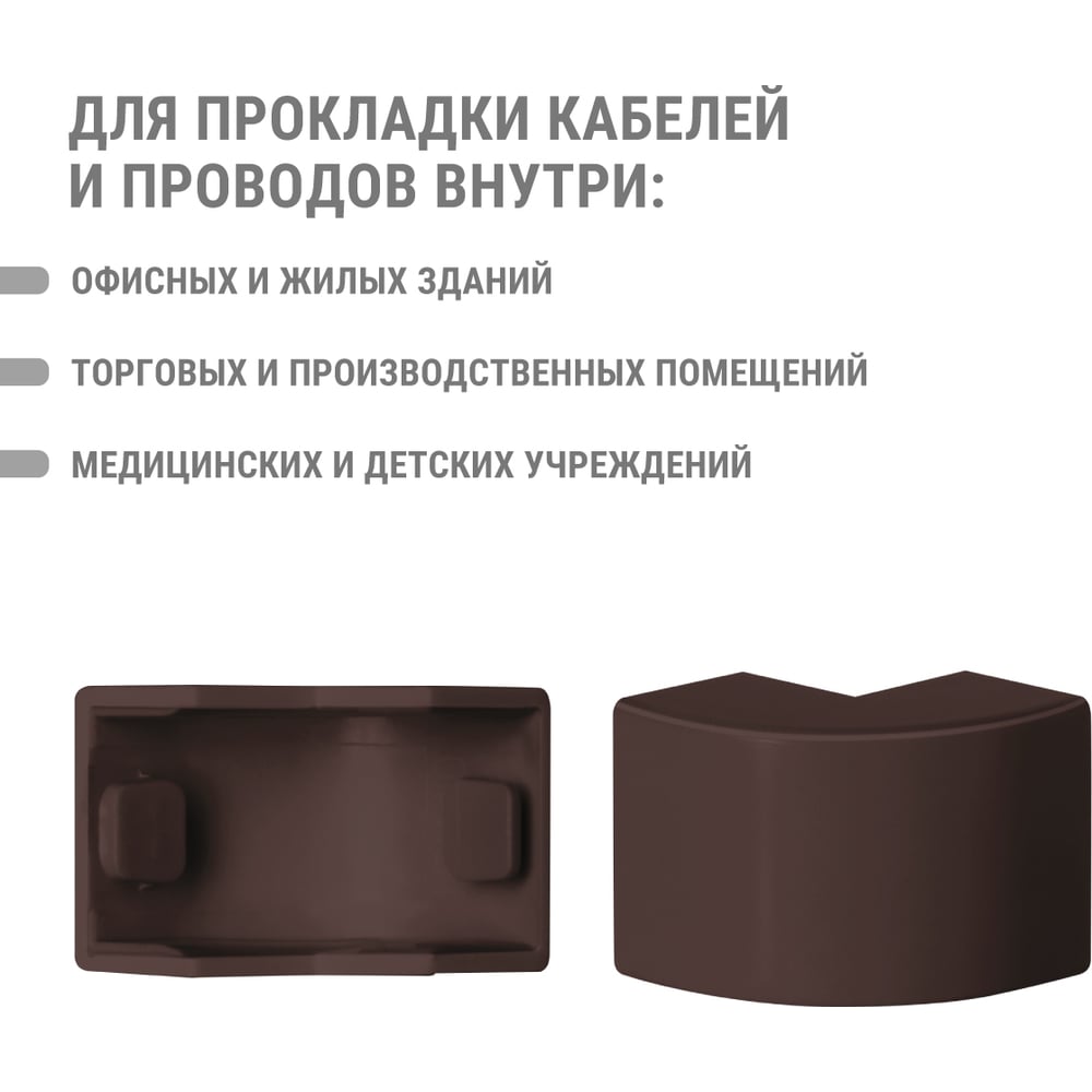 Высота 10 мм Длина 30 мм Материал ПВХ Ширина 15 мм Цвет бук Тип внешний угол Вес нетто 0.016 кг Степень защиты IP40 Количество в упаковке 4 шт Температура эксплуатации от -40 до +70 °С Цвет RAL 8022 Палитра коричневый Температура монтажа от -15 до +60 °С Климатическое исполнение УХЛ1 Размер 15х10 мм Количество вводов 2 шт Высота кабель-канала 10 мм Ширина кабель-канала 15 мм Количество отсеков 1 шт Изменяемый угол нет