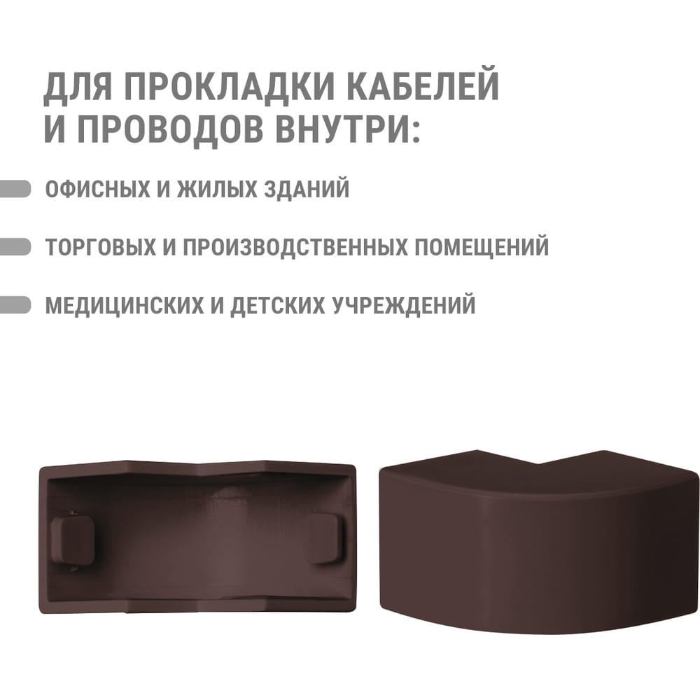 Высота 16 мм Длина 32 мм Материал ПВХ Ширина 16 мм Цвет бук Тип внешний угол Вес нетто 0.024 кг Степень защиты IP40 Количество в упаковке 4 шт Температура эксплуатации от -40 до +70 °С Цвет RAL 8022 Палитра коричневый Температура монтажа от -15 до +60 °С Климатическое исполнение УХЛ1 Размер 16х16 мм Количество вводов 2 шт Высота кабель-канала 16 мм Ширина кабель-канала 16 мм Количество отсеков 1 шт Изменяемый угол нет