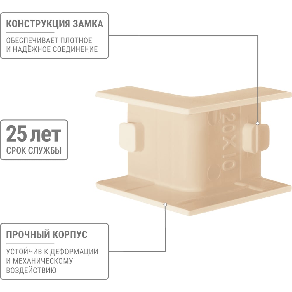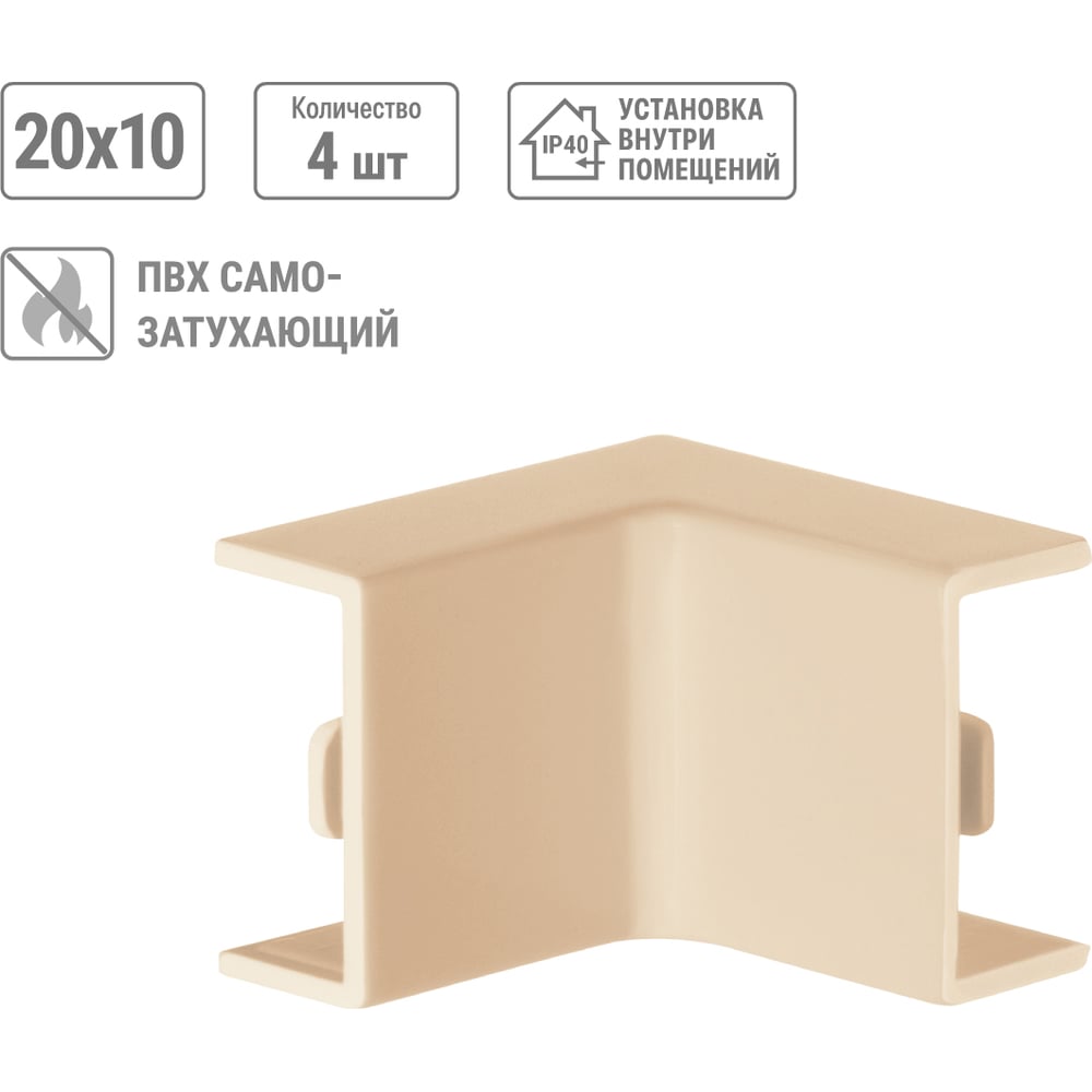 Высота 10 мм Длина 40 мм Материал ПВХ Ширина 20 мм Цвет сосна Тип внутренний угол Вес нетто 0.022 кг Степень защиты IP40 Количество в упаковке 4 шт Температура эксплуатации от -40 до +70 °С Цвет RAL 1001 Температура монтажа от -15 до +60 °С Климатическое исполнение УХЛ1 Размер 20х10 мм Количество вводов 2 шт Высота кабель-канала 10 мм Ширина кабель-канала 20 мм Количество отсеков 1 шт Изменяемый угол нет
