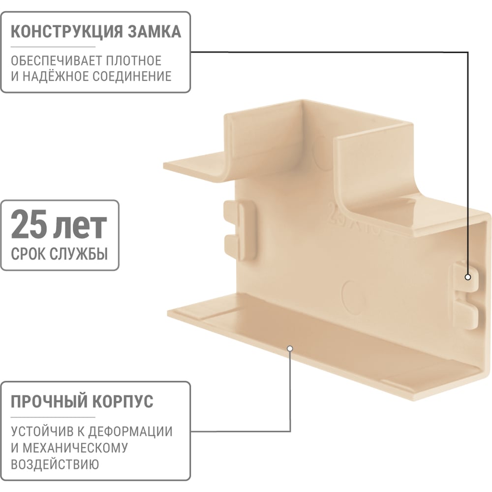 Габариты без упаковки 25х16 мм Высота 16 мм Материал ПВХ Ширина 25 мм Цвет сосна Вес нетто 0.04 кг Степень защиты IP40 Количество в упаковке 4 шт Температура эксплуатации от -40 до +70 °С Цвет RAL 1001 Климатическое исполнение УХЛ1 Размер 25х16 мм Количество вводов 3 шт Высота кабель-канала 16 мм Ширина кабель-канала 25 мм Количество отсеков 1 шт