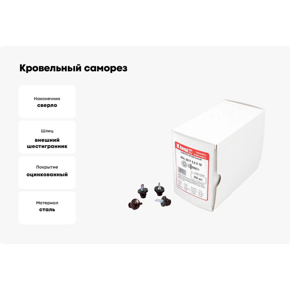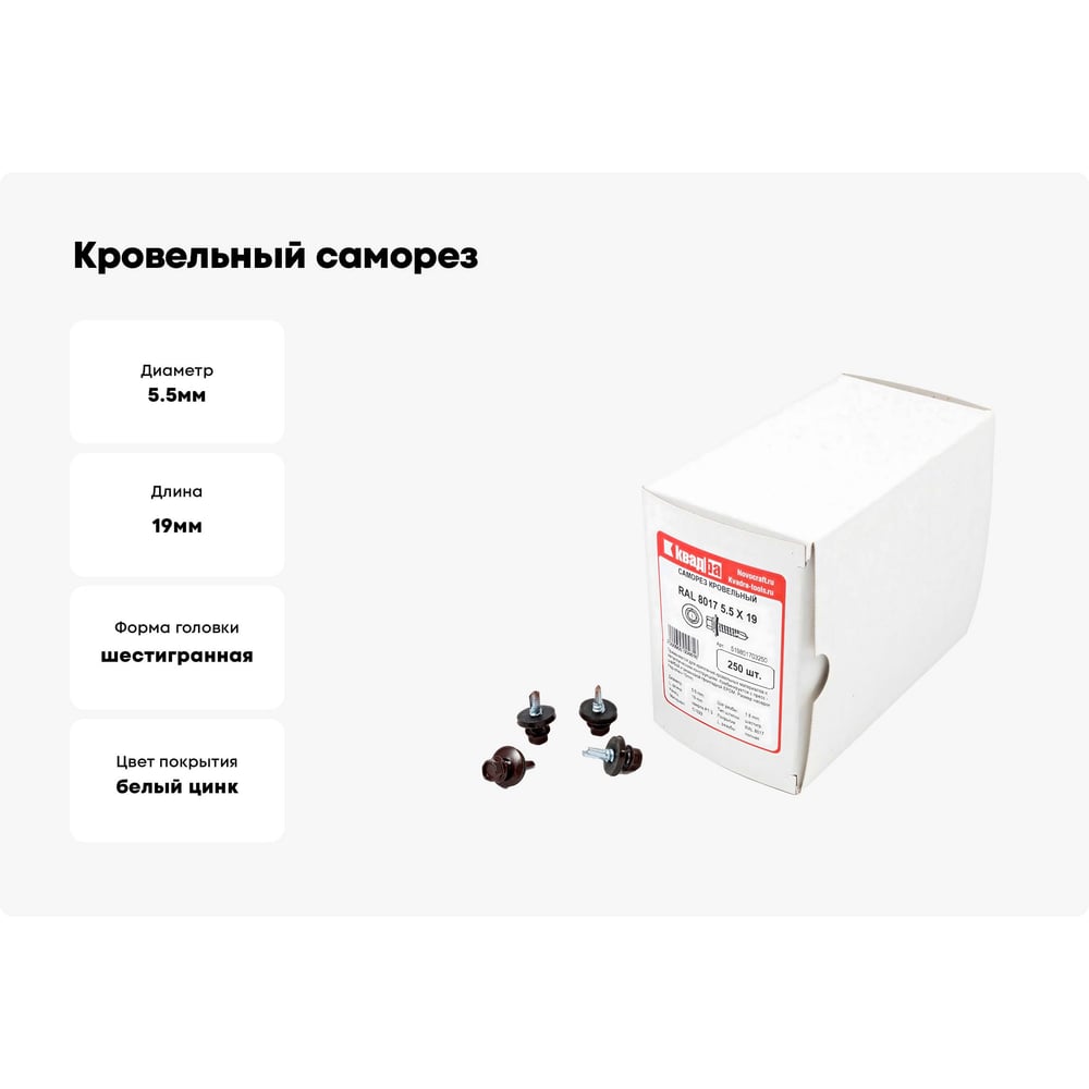 Кровельный саморез КВАДРА 5.5x19, RAL 8017 шоколад, сверло PT. 3, кор. 250 шт. 519801703250