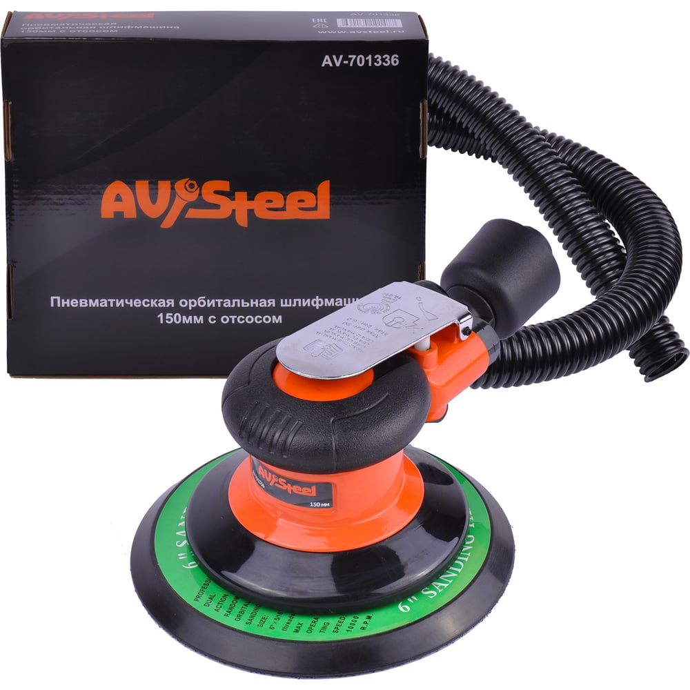 Пневматическая орбитальная шлифмашина AV Steel 150 мм с отсосом AV-701336