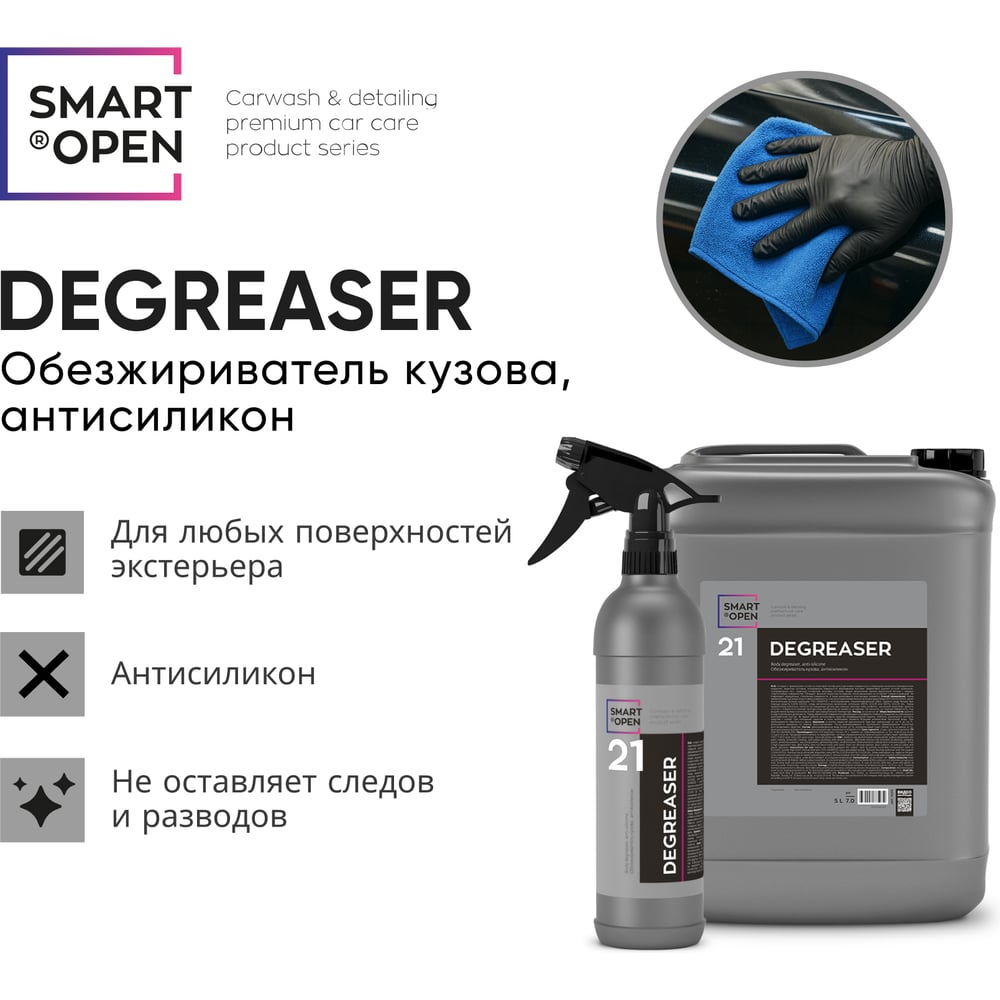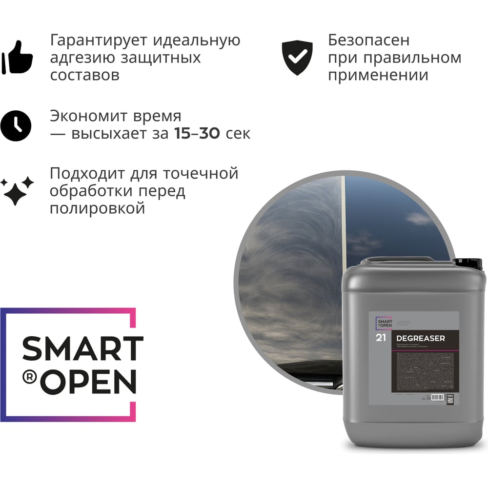 Профессиональный обезжириватель кузова автомобиля от жира, масла, силикона DEGREASER 21, 5 л Smart Open 15215