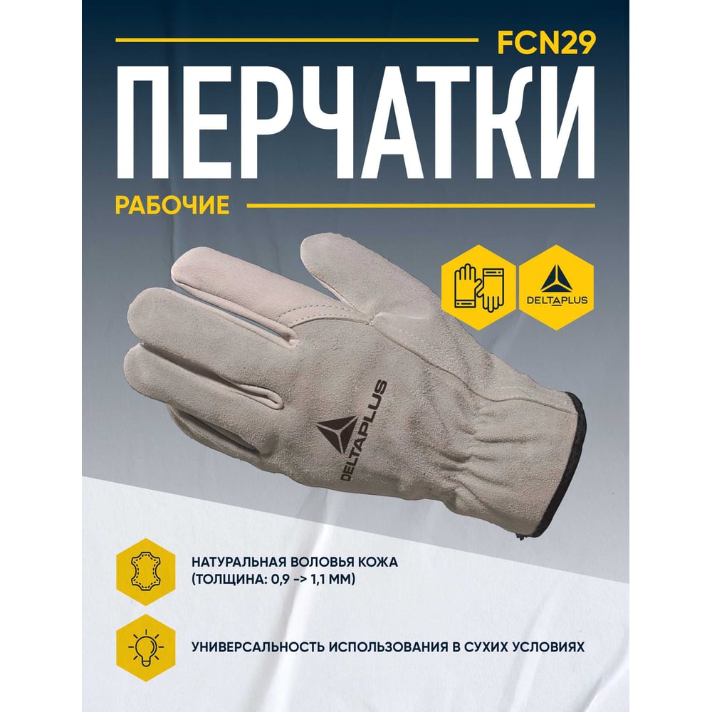 Перчатки кожаные Delta Plus FСN29 серого цвета, размер 10 FCN2910