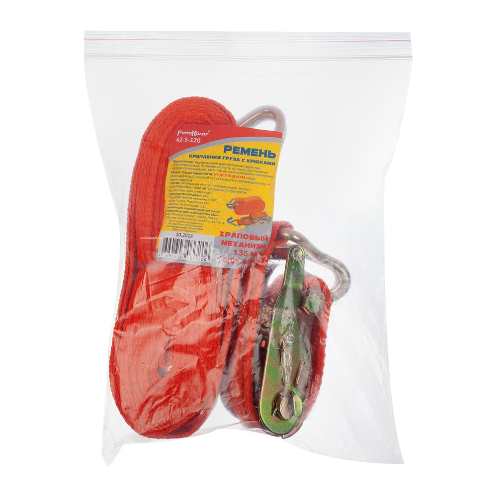 Ремень крепления груза РемоКолор с крюками, с храповым механизмом 135 мм, 0,05x6 м 62-5-120