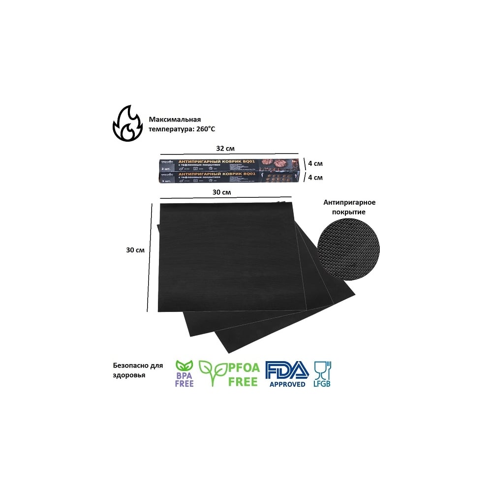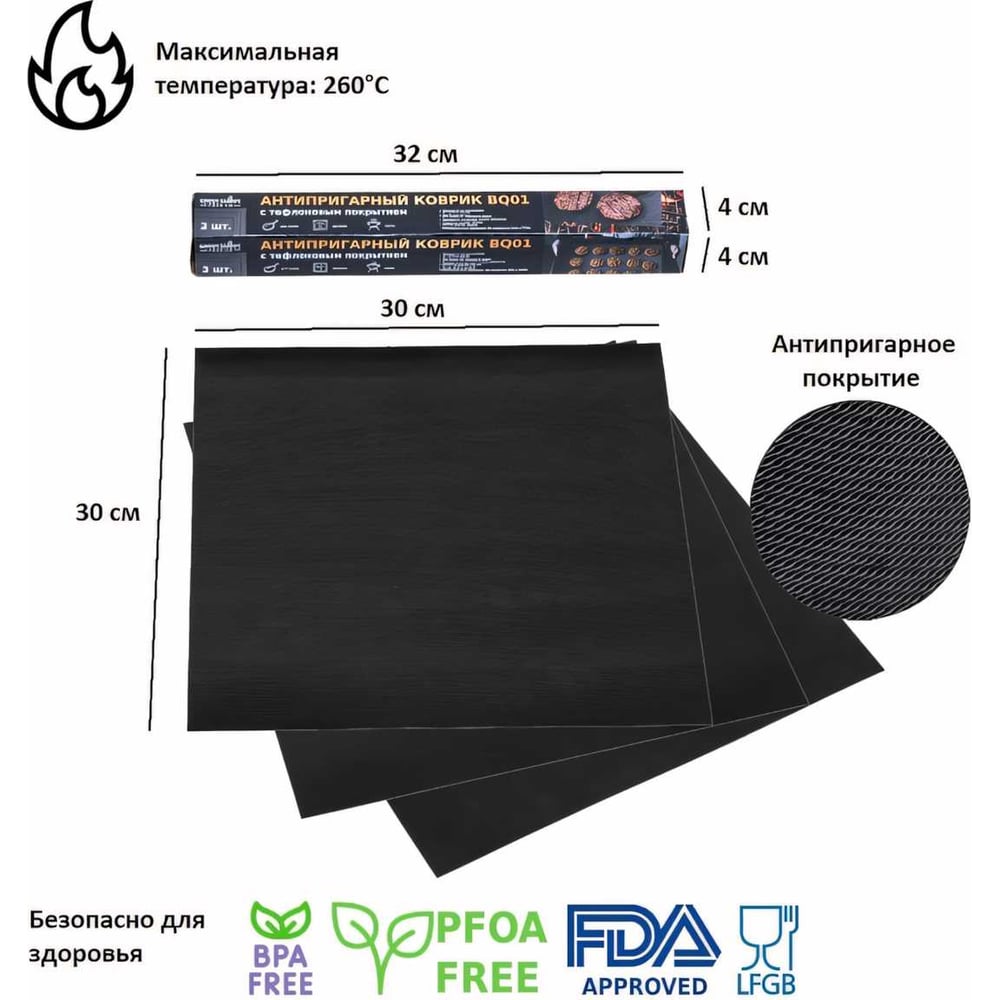 Набор антипригарных ковриков для гриля Green glade 3 шт., 30x30 см BQ01