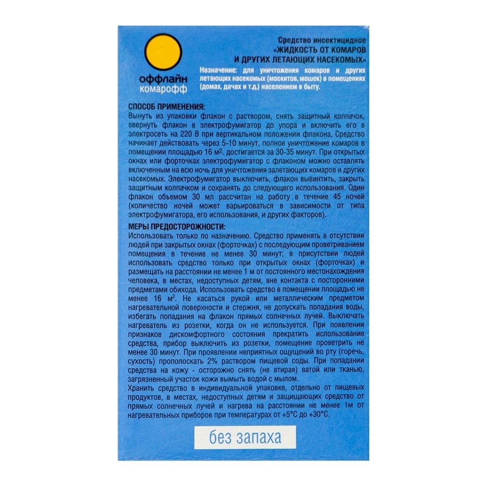 Жидкость Комарофф оффлайн БЫСТРО 45 ночей, без запаха, флакон 30 мл OF01080111