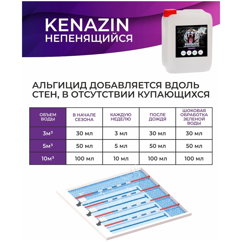 Непенящийся альгицид от водорослей в бассейне КЕНАЗ КЕНАЗИН 809356