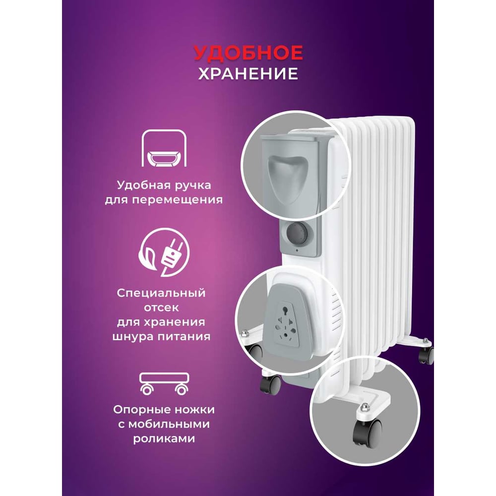 Габариты без упаковки 240x550x420 мм Цвет белый Вес нетто 7.2 кг Серия Siena Напряжение 220 В Длина кабеля 1.5 м Дисплей нет Рекомендуемая площадь 20 м² Max мощность 2 кВт Управление механическое Встроенный тепловентилятор нет Количество секций 9 Количество режимов нагрева 3 Наличие защитного кожуха нет Отключение при опрокидывании да Световой индикатор да Регулируемый термостат да