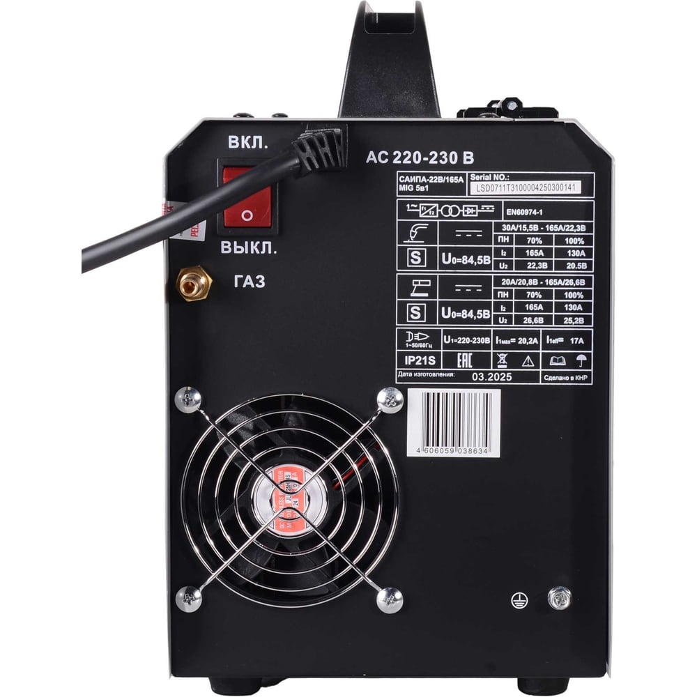 | Max сварочный ток MIG-MAG | 165 А |