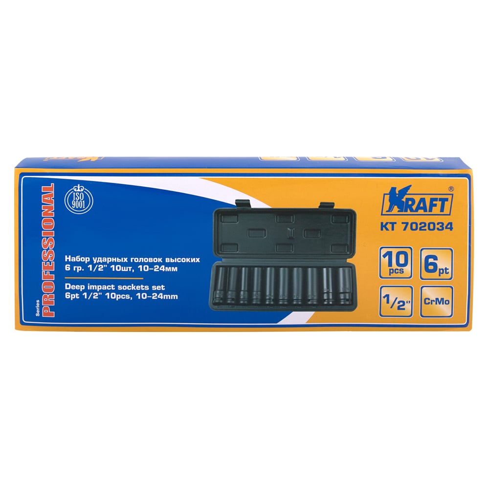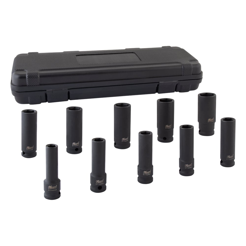 Набор ударных глубоких торцевых головок (10 шт; 10-24 мм; 1/2) KRAFT KT 702034