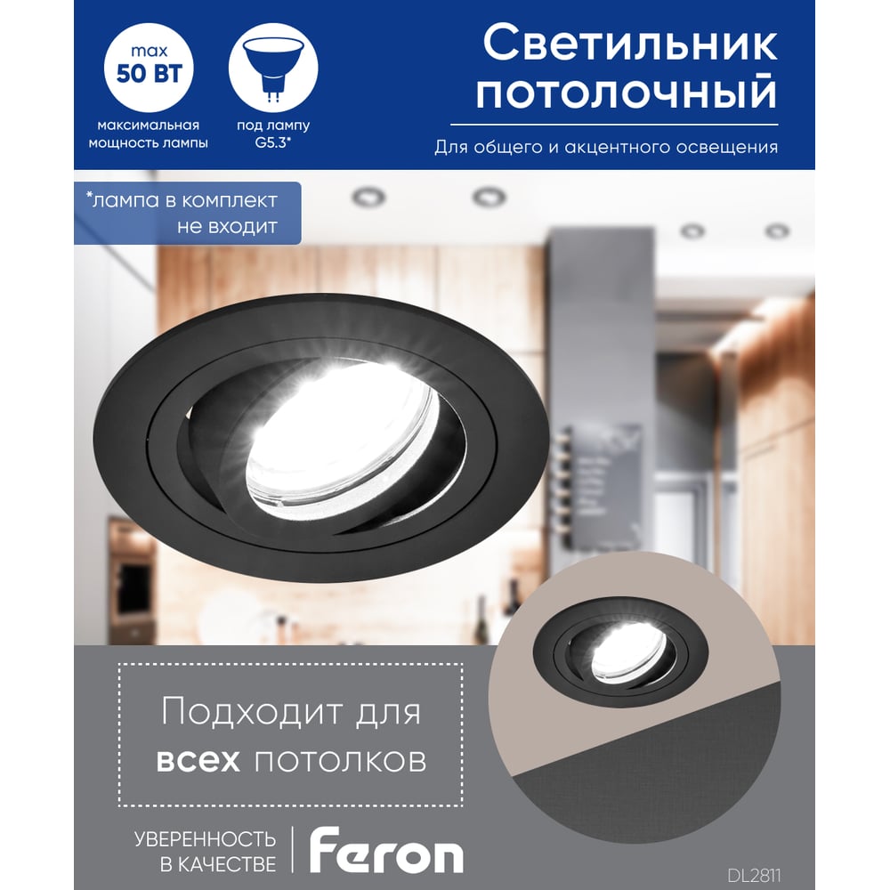 Встраиваемый потолочный светильник FERON DL2811 MR16 G5.3 черный 40528