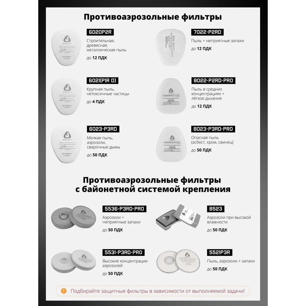 | Защитные свойства | от механических частиц, лакокрасочных материалов и паров |