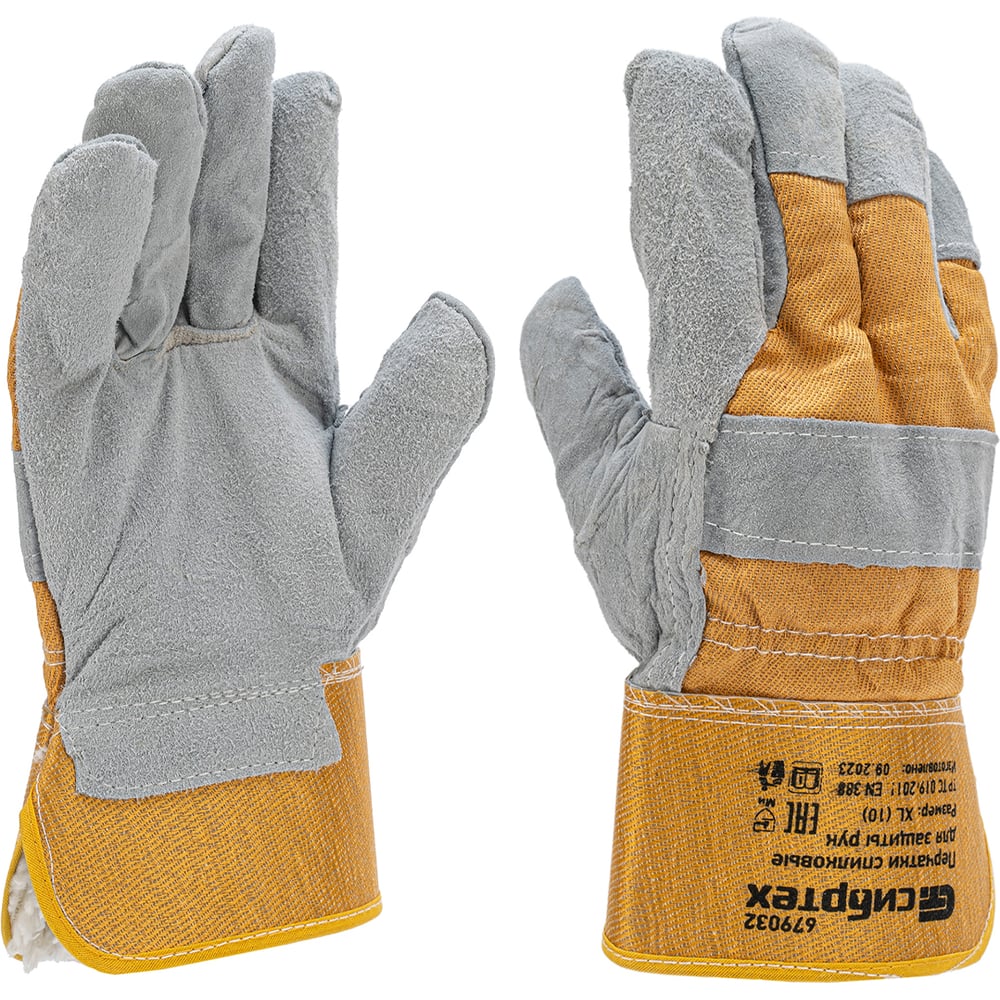Комбинированные усиленные спилковые перчатки СИБРТЕХ утолщенные, размер XL 679032