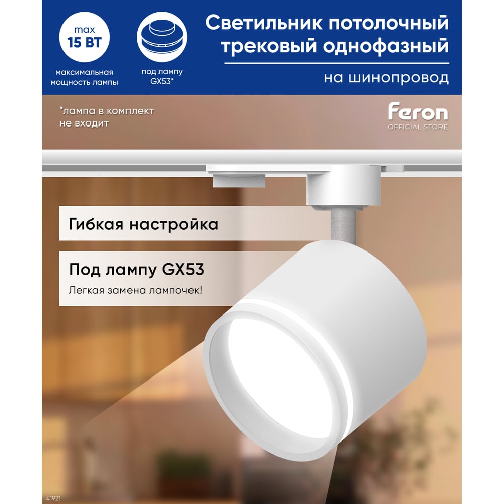 Трековый однофазный светильник FERON AL163 41921
