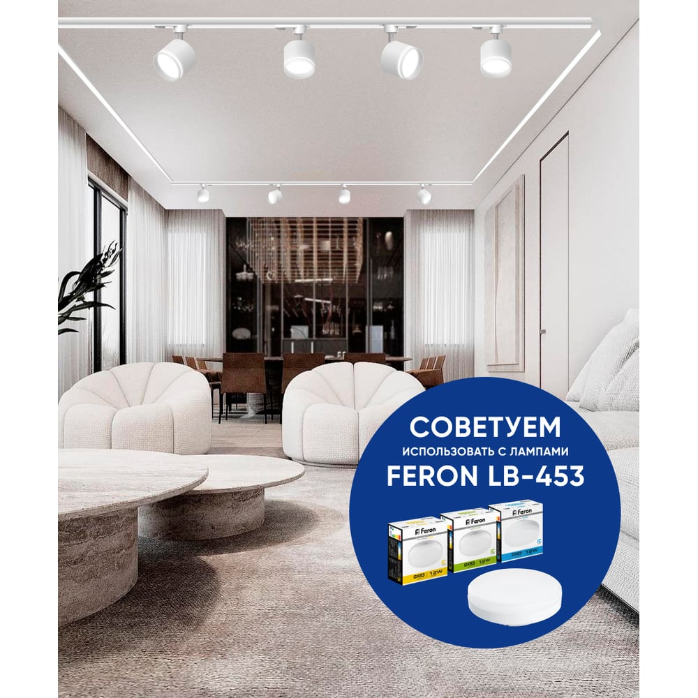 Трековый однофазный светильник FERON AL163 на шинопровод под лампу GX53, белый 41921