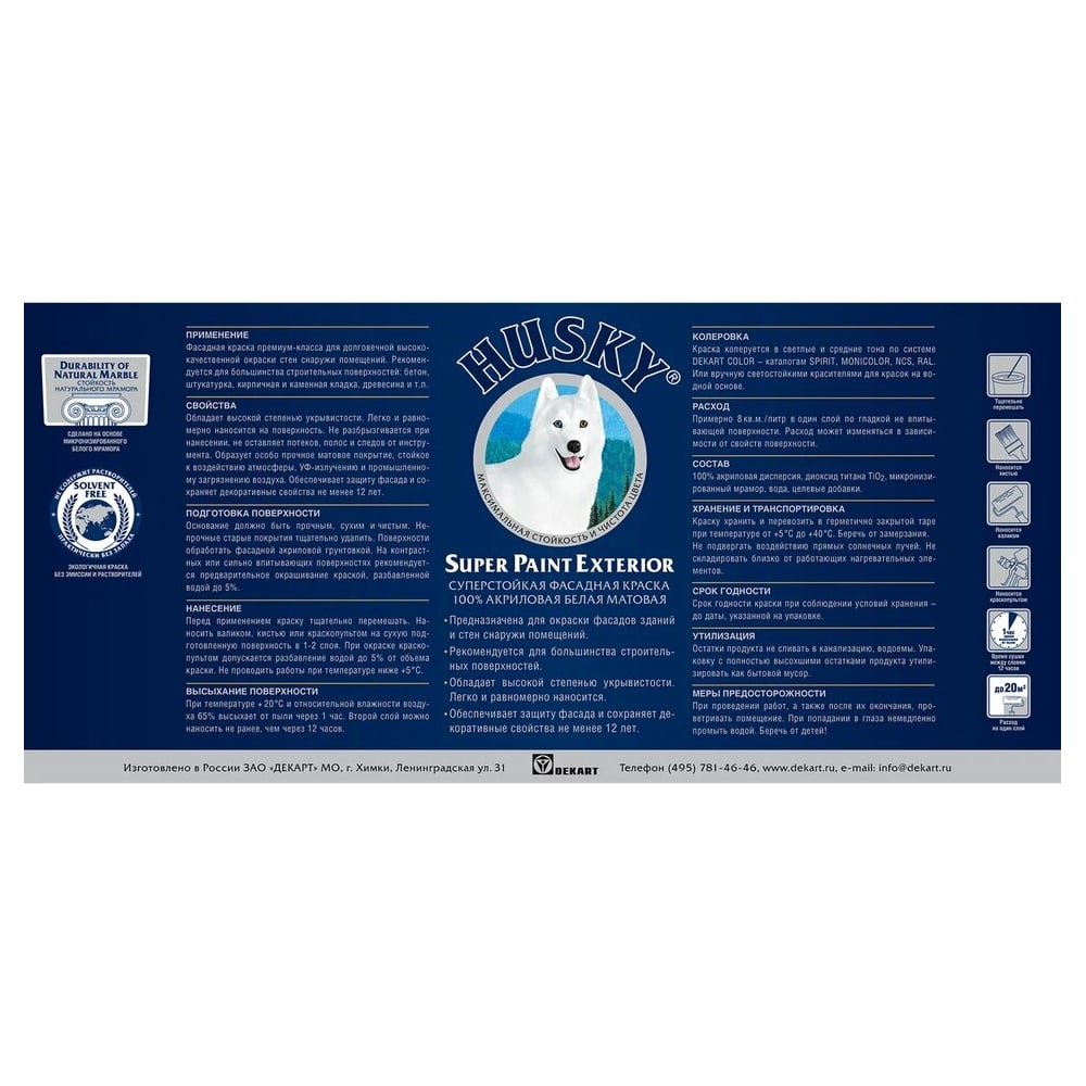 | Система колеровки | Dekart Color — каталогам SPIRIT, MONICOLOR, NCS, RAL. |