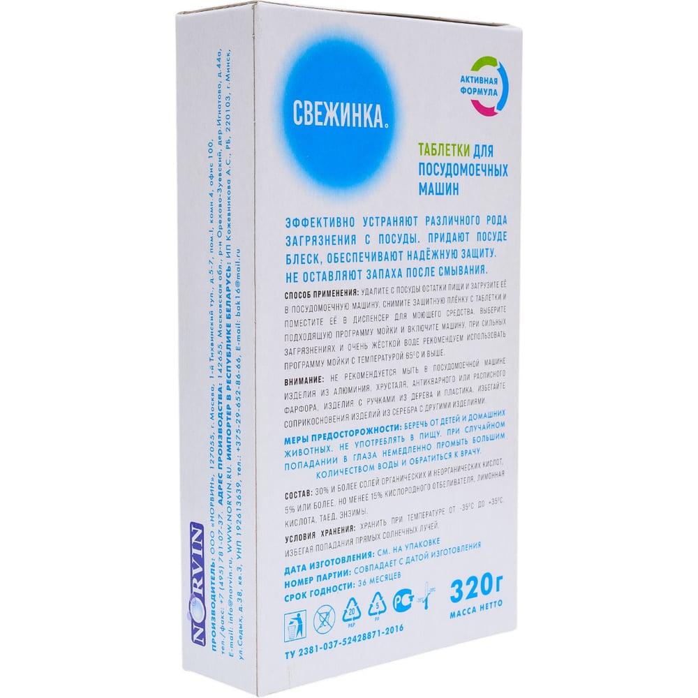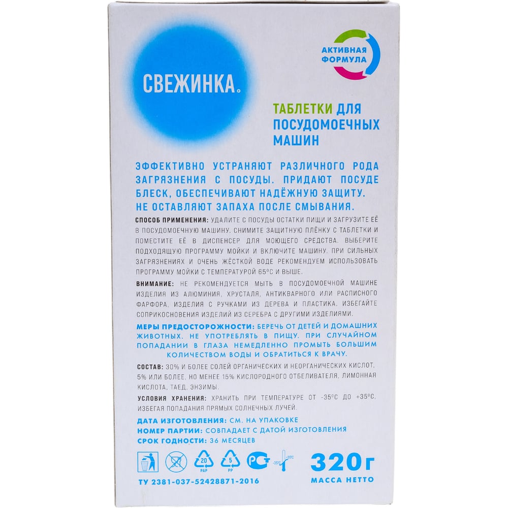 Таблетки для посудомоечных машин Свежинка 16 шт. 1993