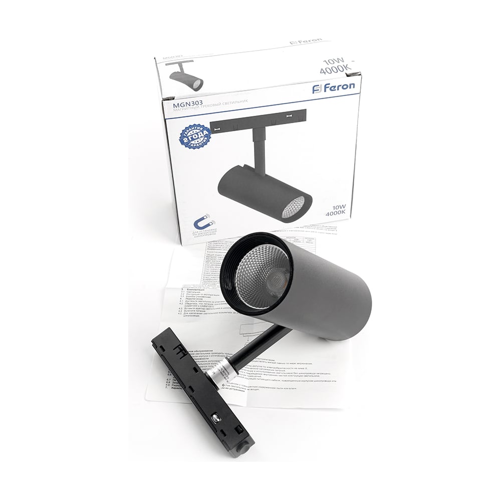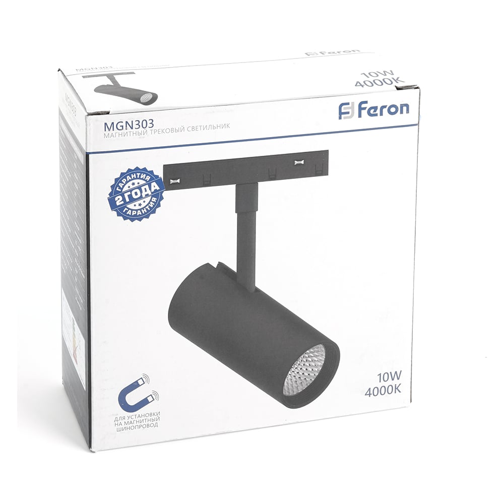 Светодиодный магнитный светильник FERON MGN303 трековый низковольтный 10W, 900 Lm, 4000К, 35 градусов, черный 41946