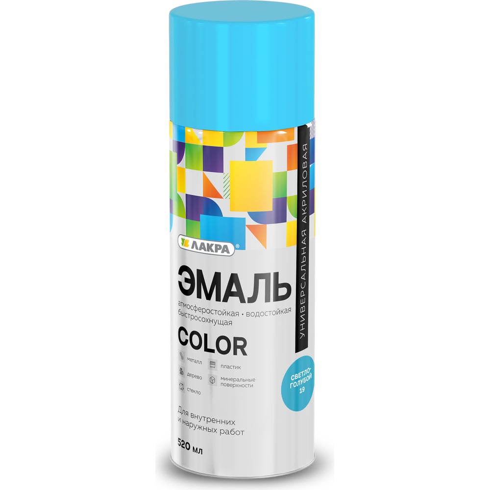 Аэрозольная эмаль ЛАКРА Color универсальная, светло-голубой 19 Лк-00012484