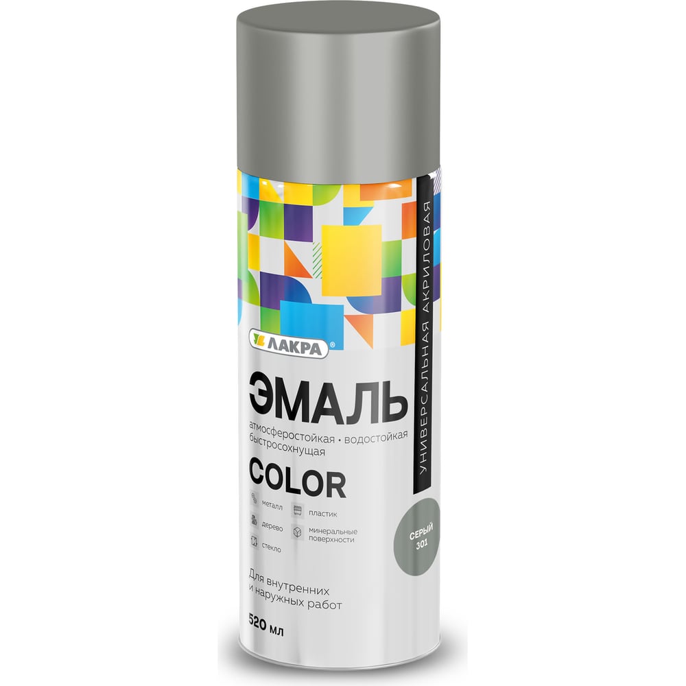 Аэрозольная эмаль ЛАКРА Color универсальная, серый 301 Лк-00012478